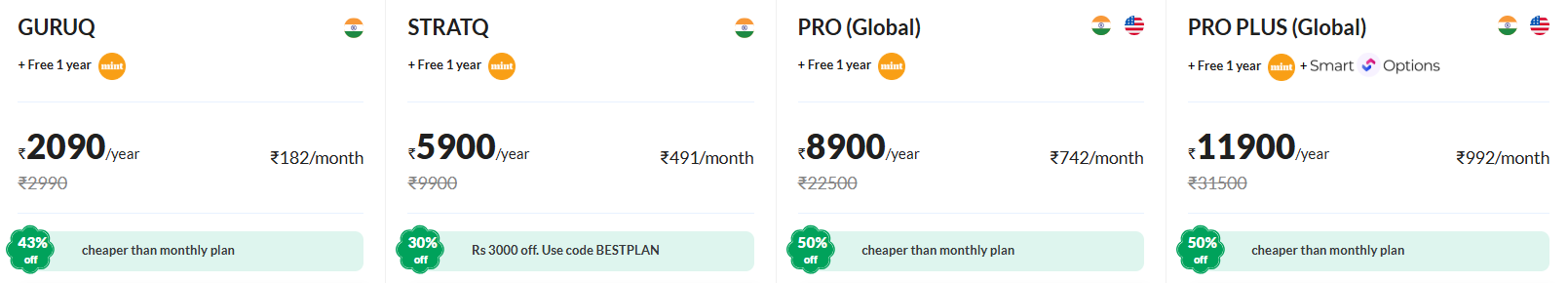 Pro Plus includes access to Trendlyne India + Trendlyne US + SmartOptions.