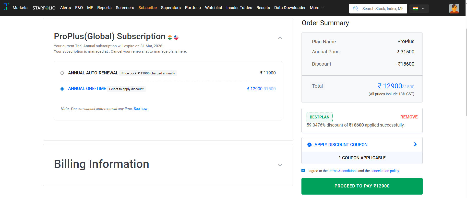 Extending your active subscription is as seamless as the initial subscription process. When you choose the 'Upgrade' option, you can select to extend your plan either monthly or annually.