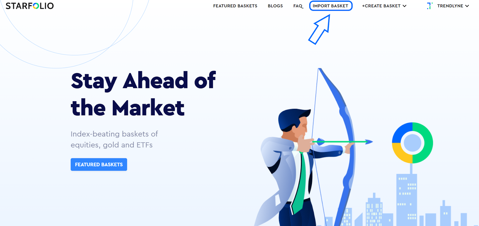 Step 1: Click on the ‘Import Basket’ button on Starfolio's navigation bar.
