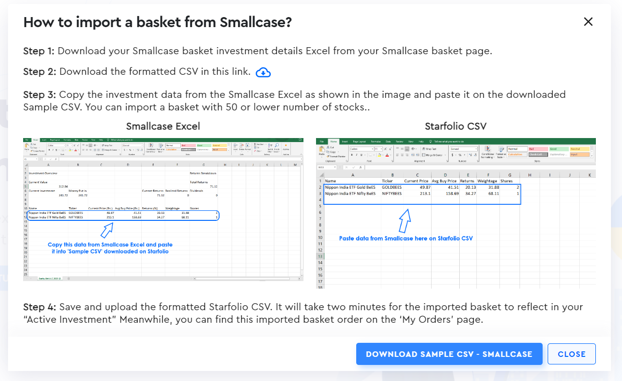 Step 4: As a next step, click on the ‘Sample CSV - Smallcase’ button.