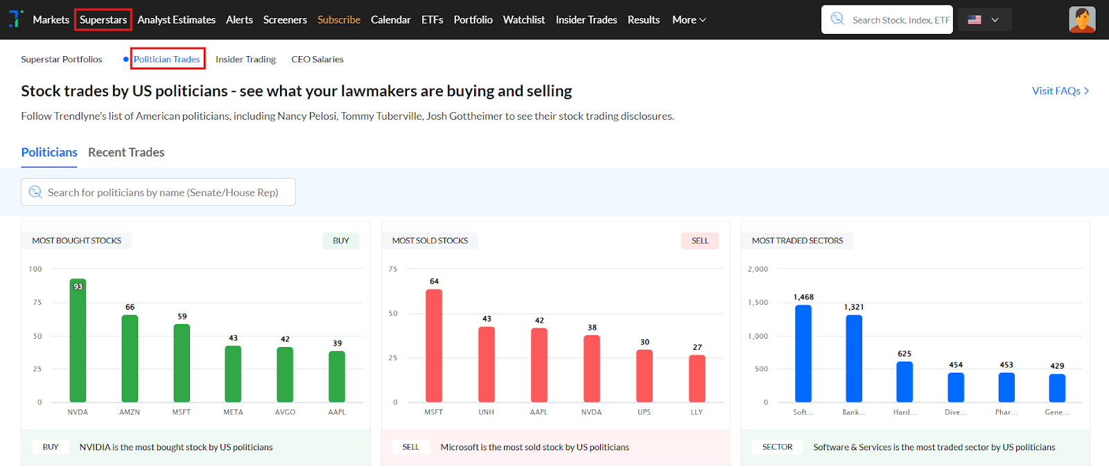 Curious what US lawmakers are buying and selling? Trendlyne’s Politician trades feature lets you follow stock trades by political pros like Nancy Pelosi, Tommy Tuberville, Josh Gottheimer, and more.